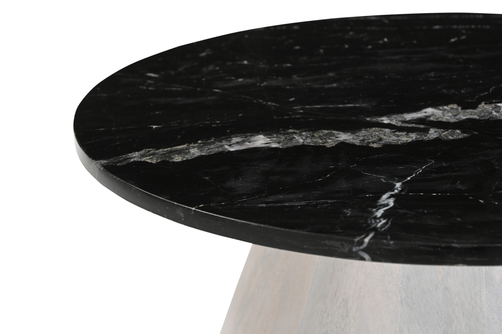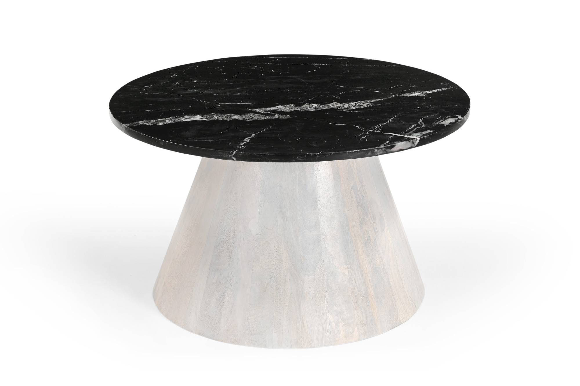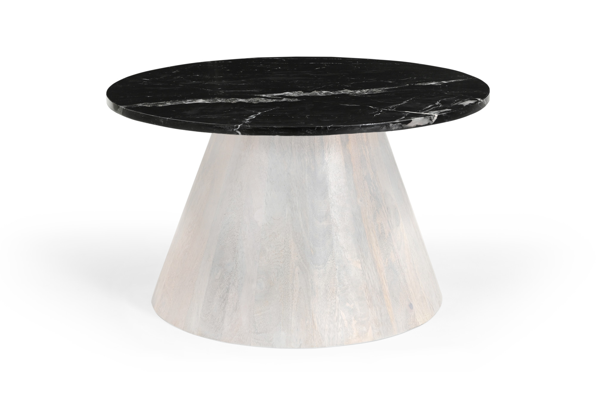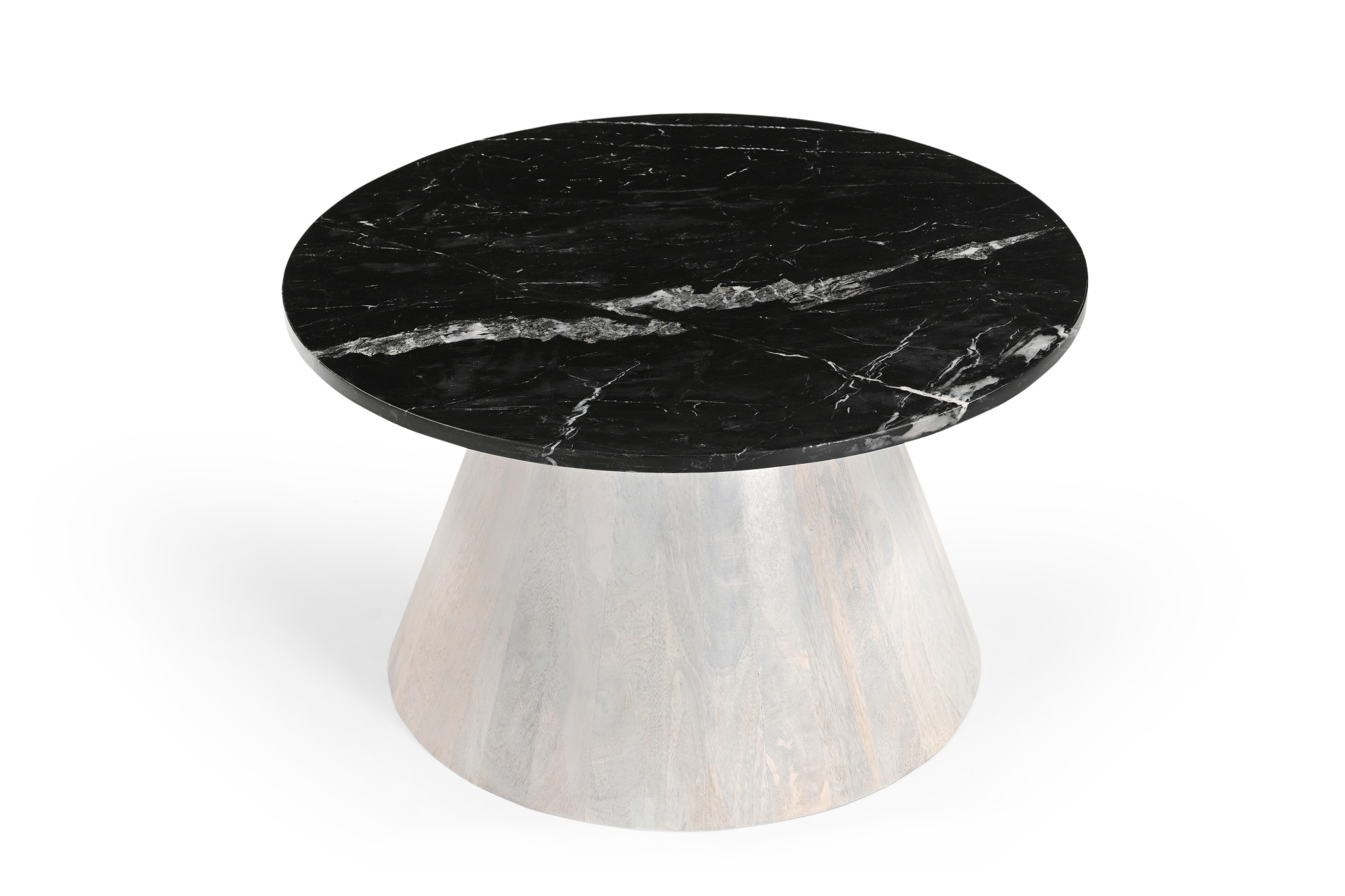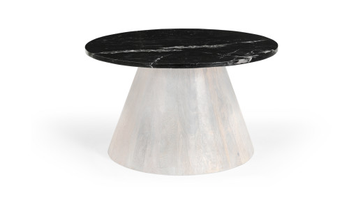 Marmoholz Bari – Stolik Kawowy | Czarny Marmur & Biały Niejednolity Mango | Ø70 cm