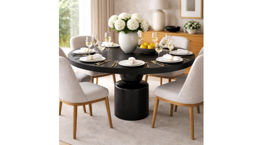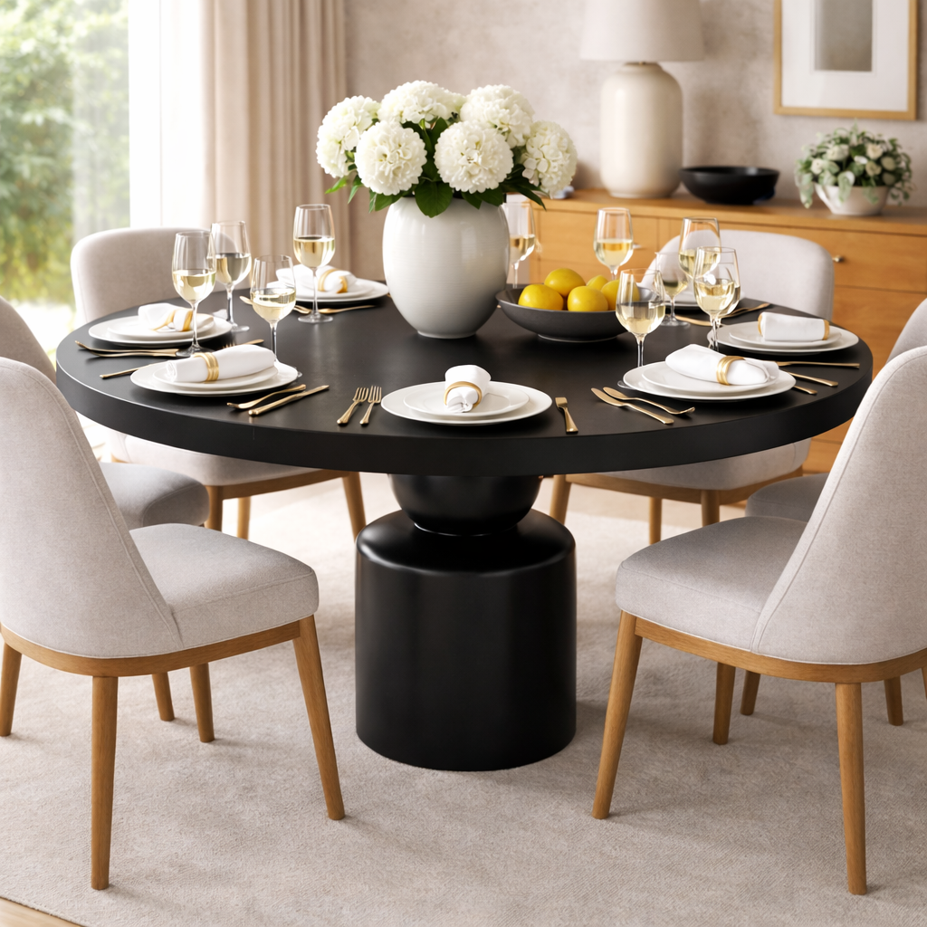 Blat o średnicy 140 cm zapewnia komfort dla 5–6 osób — idealny do codziennych posiłków i spotkań. Czarna powierzchnia podkreśla nowoczesny styl i świetnie kontrastuje z jasnymi wnętrzami.