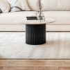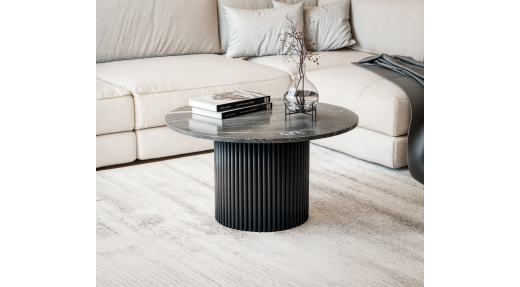 Stolik kawowy Roma w wersji czarnej to wyraz elegancji i współczesnej klasyki. Okrągły blat z naturalnego czarnego marmuru zachwyca wyrazistym żyłkowaniem i polerowanym wykończeniem, które nadaje meblowi luksusowy charakter.