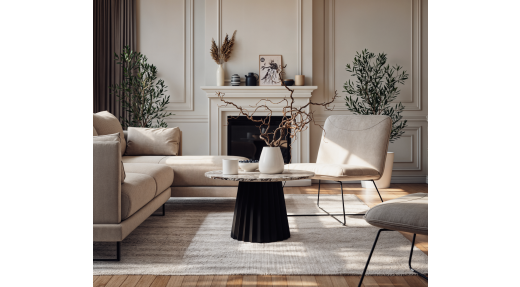 Stolik „Torino” z szarym marmurem i czarną podstawą to wyrafinowana propozycja do nowoczesnych wnętrz. Okrągły blat z marmuru wyróżnia się subtelnym żyłkowaniem i eleganckim połyskiem, który wydobywa głębię koloru.